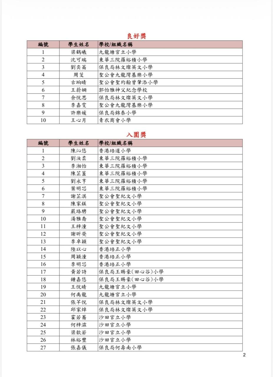 The final results are displayed in the accompanying photographs and are also available on our school website. Details regarding the Award Presentation Ceremony will be sent to the winners via a formal invitation in due course.