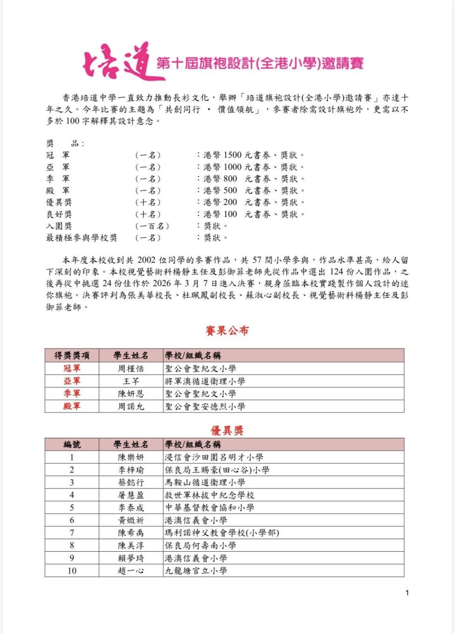 Pooi To Middle School has long been dedicated to promoting the culture of the Qipao. This year marks a significant milestone as we host the 10th Pooi To Qipao Design (Primary Section) Competition.