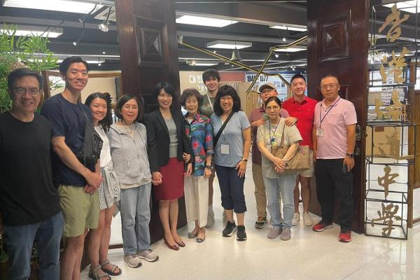 Alumna Choi Wai Tsz (Class of '61, Tai House) made a special trip from the U.S. to Hong Kong and Shanghai with over ten family members, including her children and grandchildren, and revisited her alma mater during the journey. She expressed deep gratitude for the solid foundation in mathematics and science education she received at Pui To, which greatly contributed to her subsequent career at several leading U.S. technology firms. To give back to her alma mater, she generously donated to the scholarship fund, benefiting current students. Her fellow alumna Zhang Ting (Class of '61, Tai House) also attended the gathering, where they fondly reminisced about their school days.