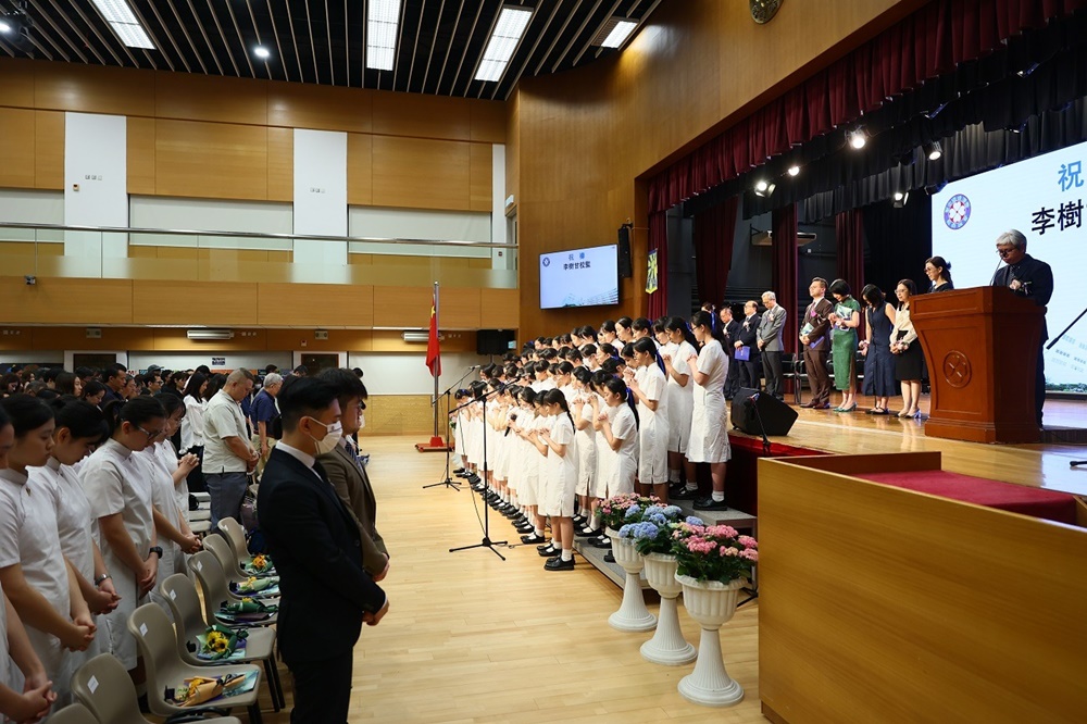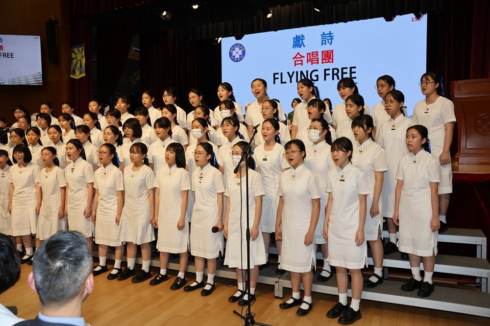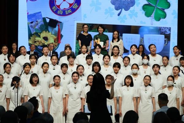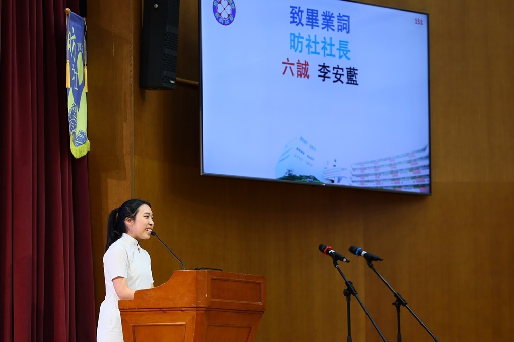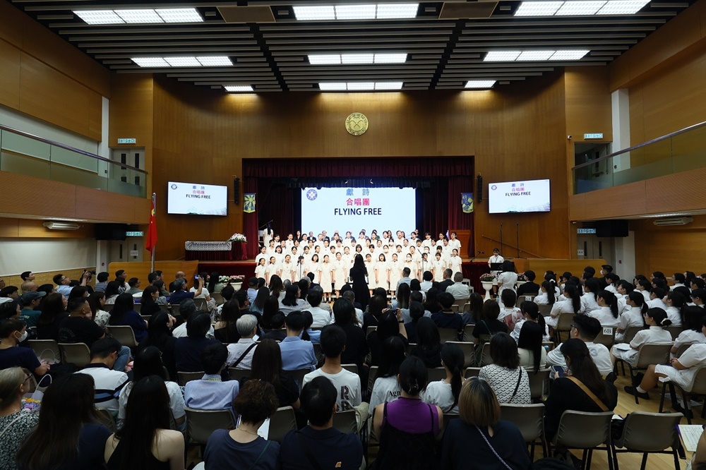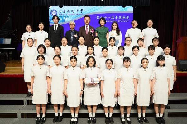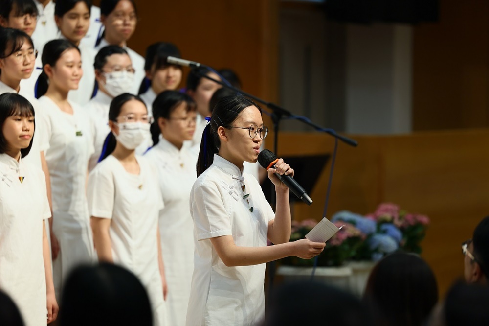 The ceremony commenced with the Guest of Honor leading a solemn procession into the hall, greeted by warm applause. The Principal delivered the annual school report, followed by an encouraging address from Professor Fan. Graduates ascended the stage one by one to receive blessings from the Guest of Honor and their homeroom teachers, capturing the moment in commemorative photos. Graduate representative Leanne Lee expressed heartfelt gratitude for the school’s nurturing care and pledged to strive forward in appreciation of their teachers’ guidance. During the choir’s performance, the PTA presented flowers and keepsake trophies to each graduate, symbolizing parents’ love and recognition.