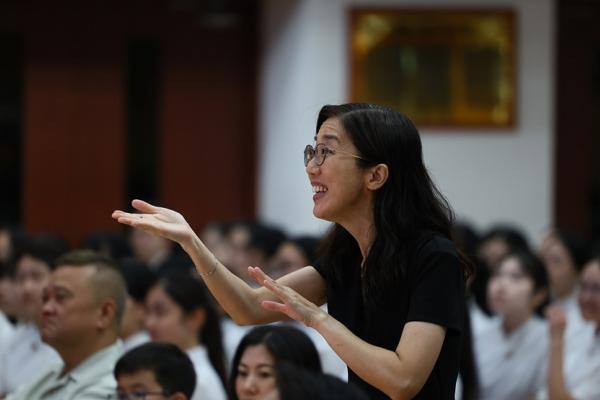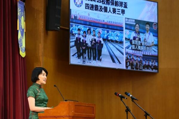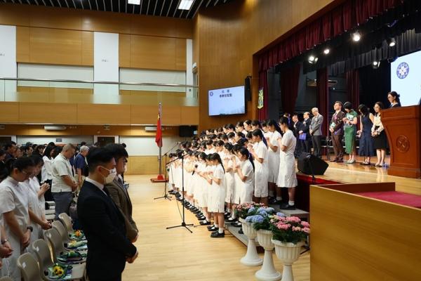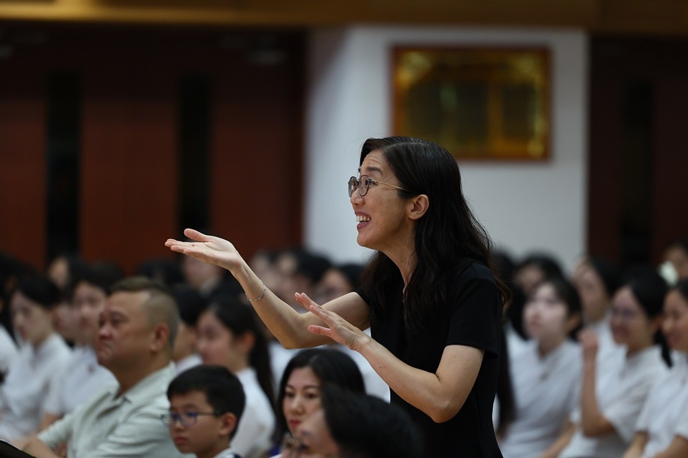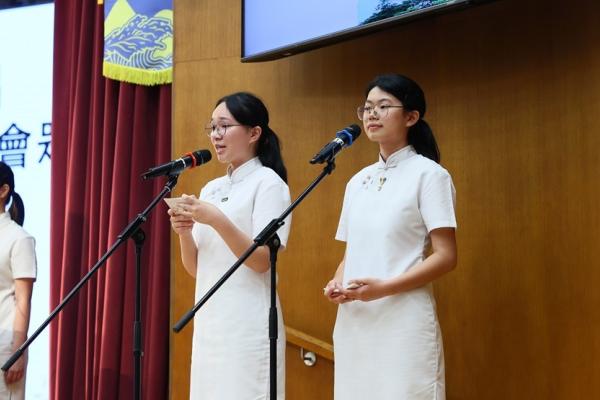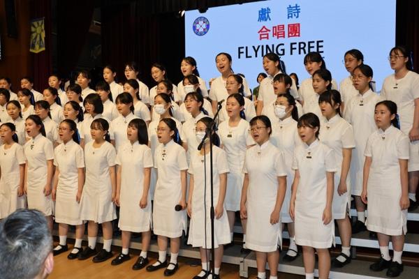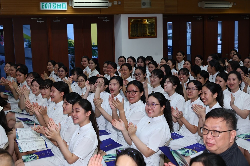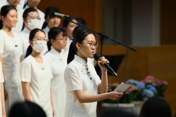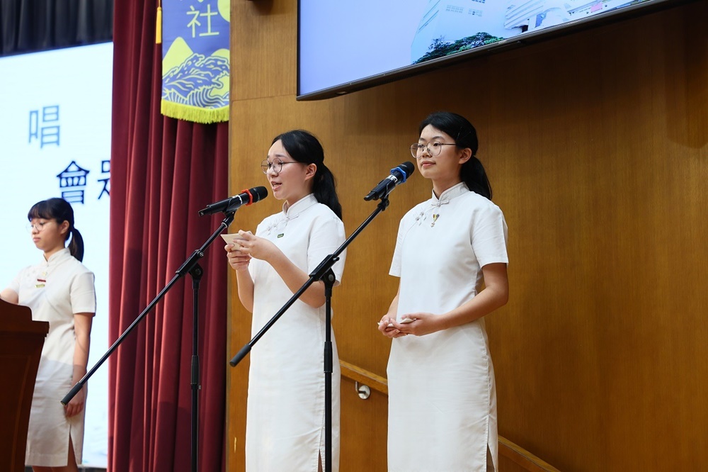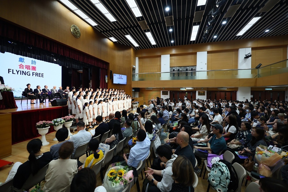 The ceremony commenced with the Guest of Honor leading a solemn procession into the hall, greeted by warm applause. The Principal delivered the annual school report, followed by an encouraging address from Professor Fan. Graduates ascended the stage one by one to receive blessings from the Guest of Honor and their homeroom teachers, capturing the moment in commemorative photos. Graduate representative Leanne Lee expressed heartfelt gratitude for the school’s nurturing care and pledged to strive forward in appreciation of their teachers’ guidance. During the choir’s performance, the PTA presented flowers and keepsake trophies to each graduate, symbolizing parents’ love and recognition.