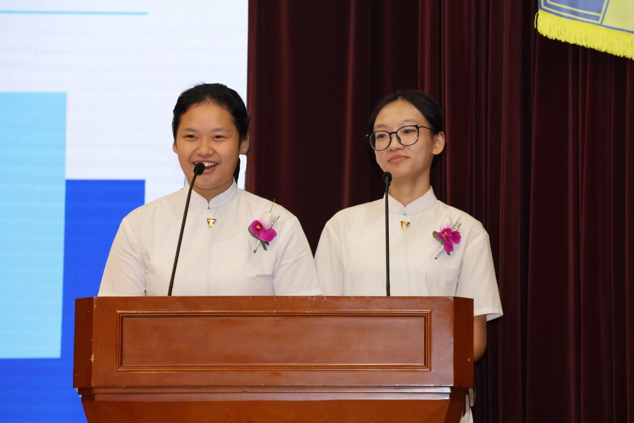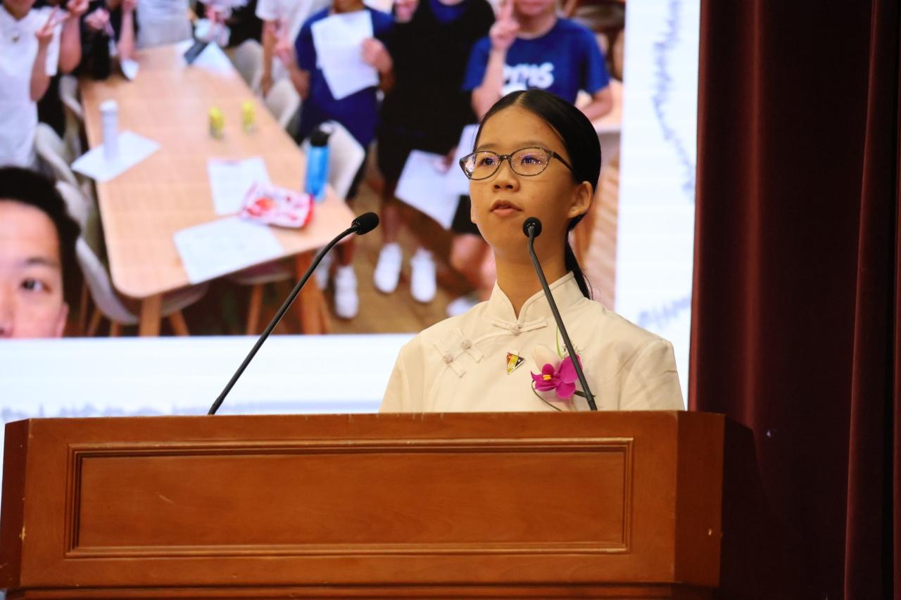 House captains presented motivational inaugural addresses, inspiring their members to live up to their house mottos. Vice House Captains expressed heartfelt gratitude to the teachers through a vote of thanks. A highlight of the ceremony was the creative and thoughtful gift presentation by students from various houses. Their unique and meaningful gifts impressed everyone present, especially Ms. Cheung, representing not only the spirit of each house but also demonstrating students' appreciation for the Principal's guidance and support. This gesture added a memorable touch to the 2024 House Inauguration and Celebration Ceremony.