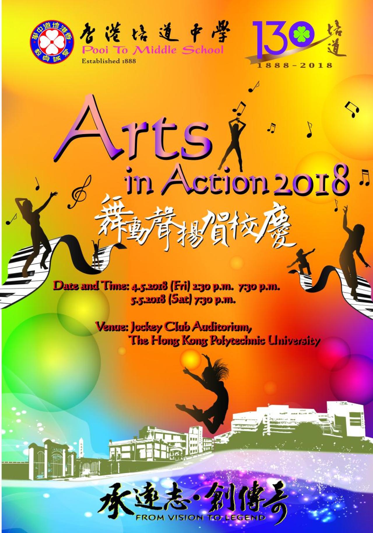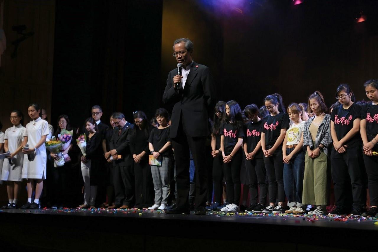 Arts in Action 2018, a unique component of the 130th anniversary celebrations, represented the culmination of ten months’ work by over 200 students. Our Orchestra, Zheng Ensemble, Chinese Dance troupes, Modern Dance Club, A Cappella Team, School Choir, Pop Band and the Musical actors collaborating closely with the Backstage Team, Make-up Team, Costume Team, Campus TV Team and Photography Teams to stage superb performances. They all excelled in acting, singing and dancing skills. The Qipao Fashion Show accompanied by the Zheng Ensemble gave a touch of grace and elegance to the atmosphere. During intermission, all patrons could vote for their favourite qipao to express their appreciation of students’ artistic talents and tremendous efforts. All of the students participating contributed to the evening’s success.