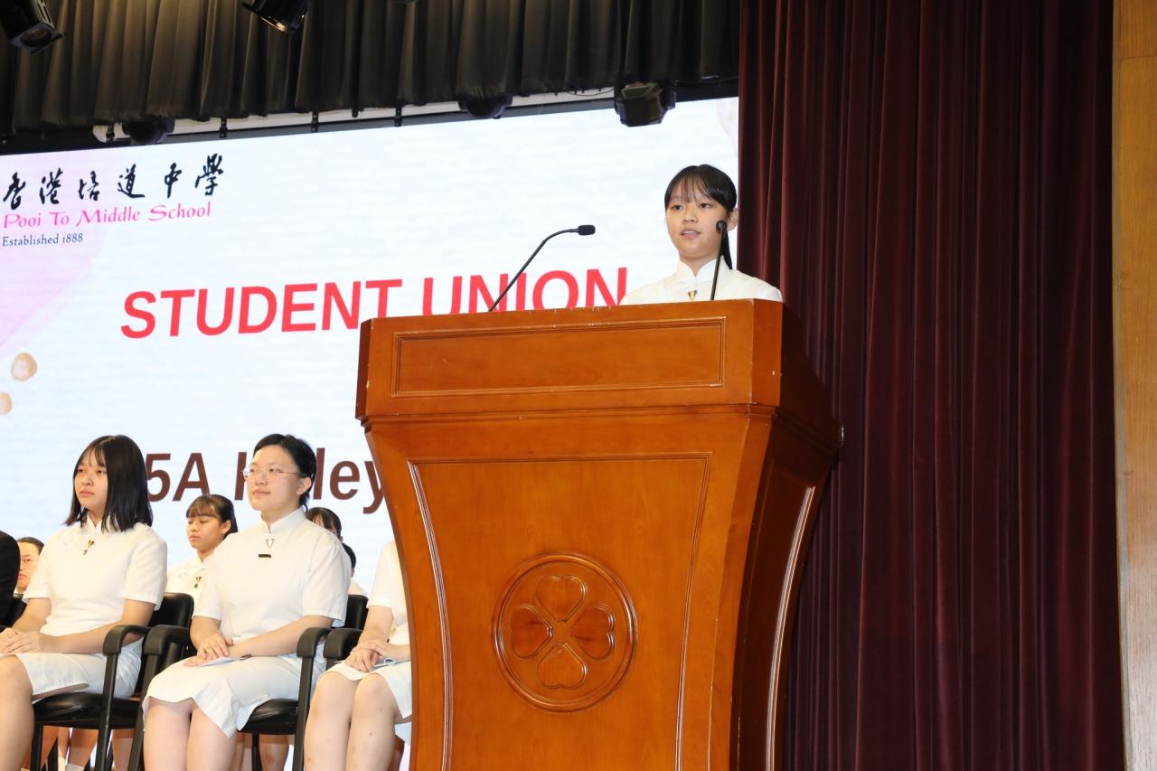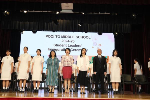 The annual Student Leaders' Inauguration Ceremony was held on this day. During the event, leaders from different teams showcased their leadership skills and highlighted their respective teams' missions, while student representatives from various extra-curricular activities groups stood up and vowed to serve their fellow schoolmates. In her speech, our Principal, Ms Cheung, emphasised the importance of being a servant leader - serving others in leadership roles.