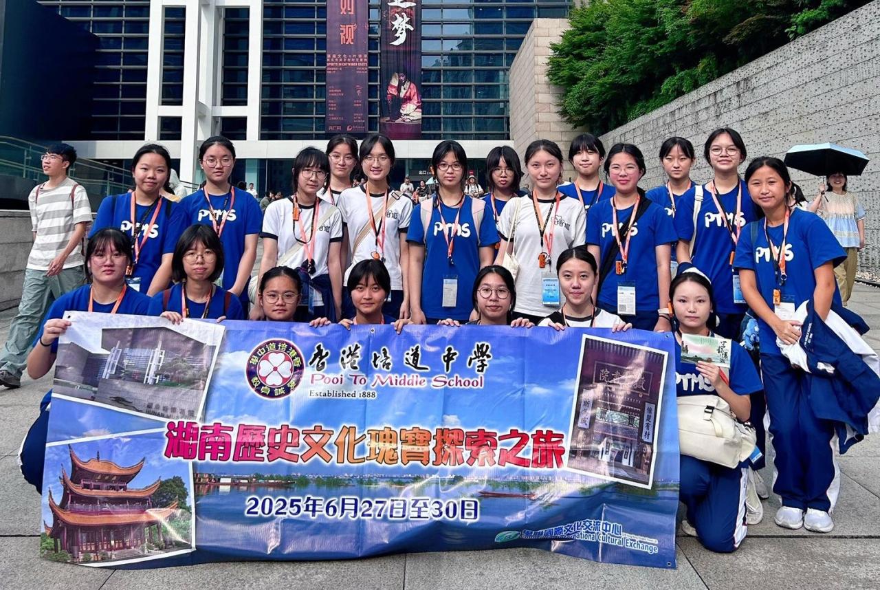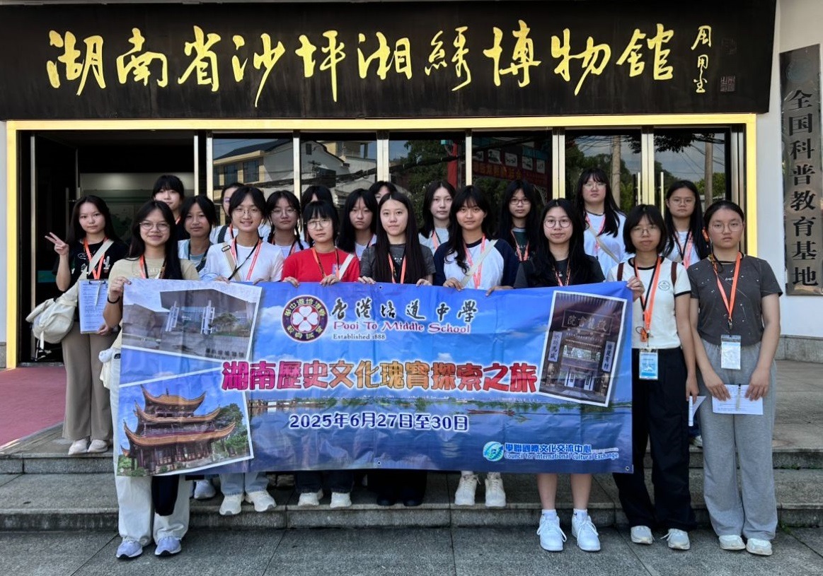 Twenty Secondary 2 to Secondary 4 students participated in the "Hunan Historical and Cultural Treasures Exploration Tour" embarking on a four-day, three-night cultural study trip to Changsha, Hunan, from June 27 to 30. During the journey, they visited the Hunan Provincial Museum and the Shaping Embroidery Museum, where they admired intangible cultural heritage. They also explored historical sites such as Yueyang Tower and Yuelu Academy, experiencing the enduring legacy of Confucian culture. Additionally, the students visited Orange Isle, featuring a statue of Chairman Mao in his youth, Du Fu Jiangge Pavilion commemorating the revered poet, as well as Pozi Street and Chaozong Street, which are brimming with local delicacies and unique crafts. Blending rich history with local customs, the trip was both highly rewarding and unforgettable, leaving everyone with cherished memories.