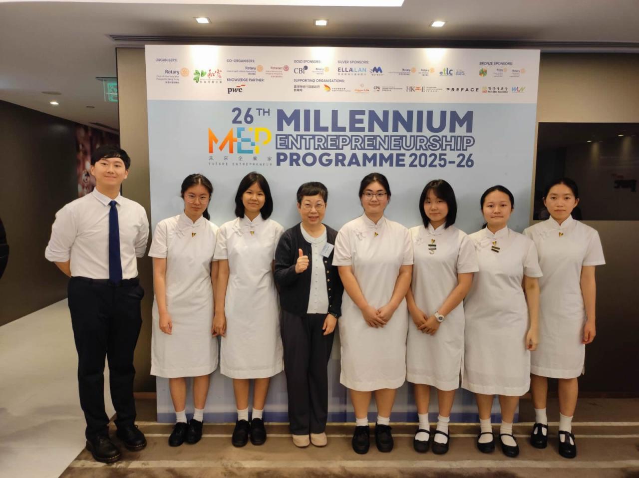 We are delighted to share that six of our Form 5 students studying BAFS recently participated in the "26th Millennium Entrepreneurship Programme 2025-2026", co-organized by the Rotary Club of Hong Kong Wofoo and Wofoo Social Enterprises. Centering their project around the UN Sustainable Development Goal 3 (SDG 3: Good Health and Well-being), the students successfully stood out among 114 teams from over 50 schools across Hong Kong. They proudly clinched the Merit Award, taking home a cash prize of HK$2,000 and a team trophy, demonstrating their exceptional business acumen and excellent teamwork. We hope our students will maintain their passion for business and entrepreneurship, and continue to shine and showcase their outstanding entrepreneurial spirit on future stages! Lastly, special thanks to Ms Elaine Mak, the Accountant Ambassador from the HKICPA for her unwavering support to the team!