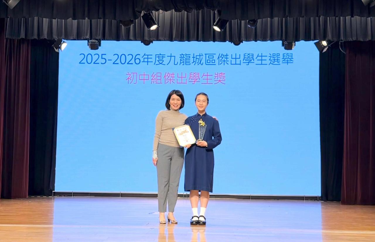 We are pleased to announce that in the 2025-2026 Kowloon City District Outstanding Student Election, Tania Li (S3) and Angel Choi (S5) have won the Outstanding Student Award in both junior and senior sections, respectively. Congratulations!