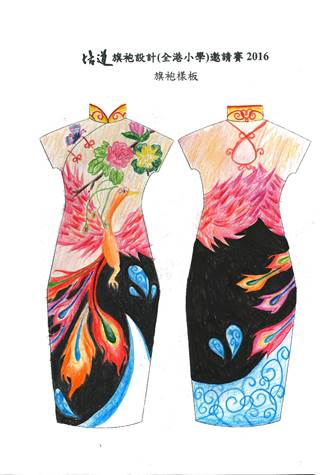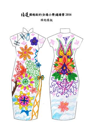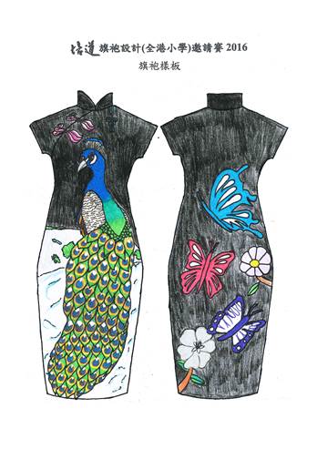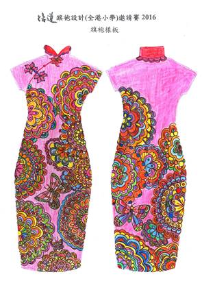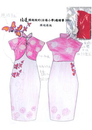 | 作品意念: | 旗袍是中國傳統的女性服裝,表露出女性雍容華貴的一面,更令體態美麗動人。而 我設計的作品是以蝴蝶和花朵為主題,蝴蝶在花朵上翩翩起舞,姿態優美,給人 新鮮美妙的感覺,更顯出旗袍突出的華貴美態,充滿喜樂的心。 | ||