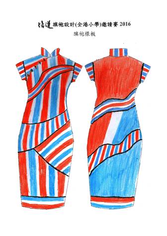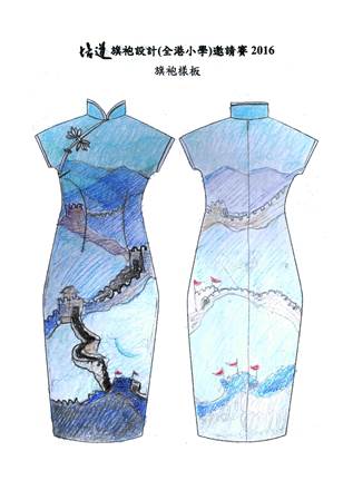 | 作品意念: 「我的型格旗袍」是一個中西文化的旗袍,有一種很帥的感覺。而上面就是一面紗布,化表純潔的心,又代表着潮流。 | 作品意念: 這旗袍以北京萬里長城作為主題。 | 作品意念: 這旗袍的意念是來自60-70年代的髮廊和紅白藍塑袋。 |