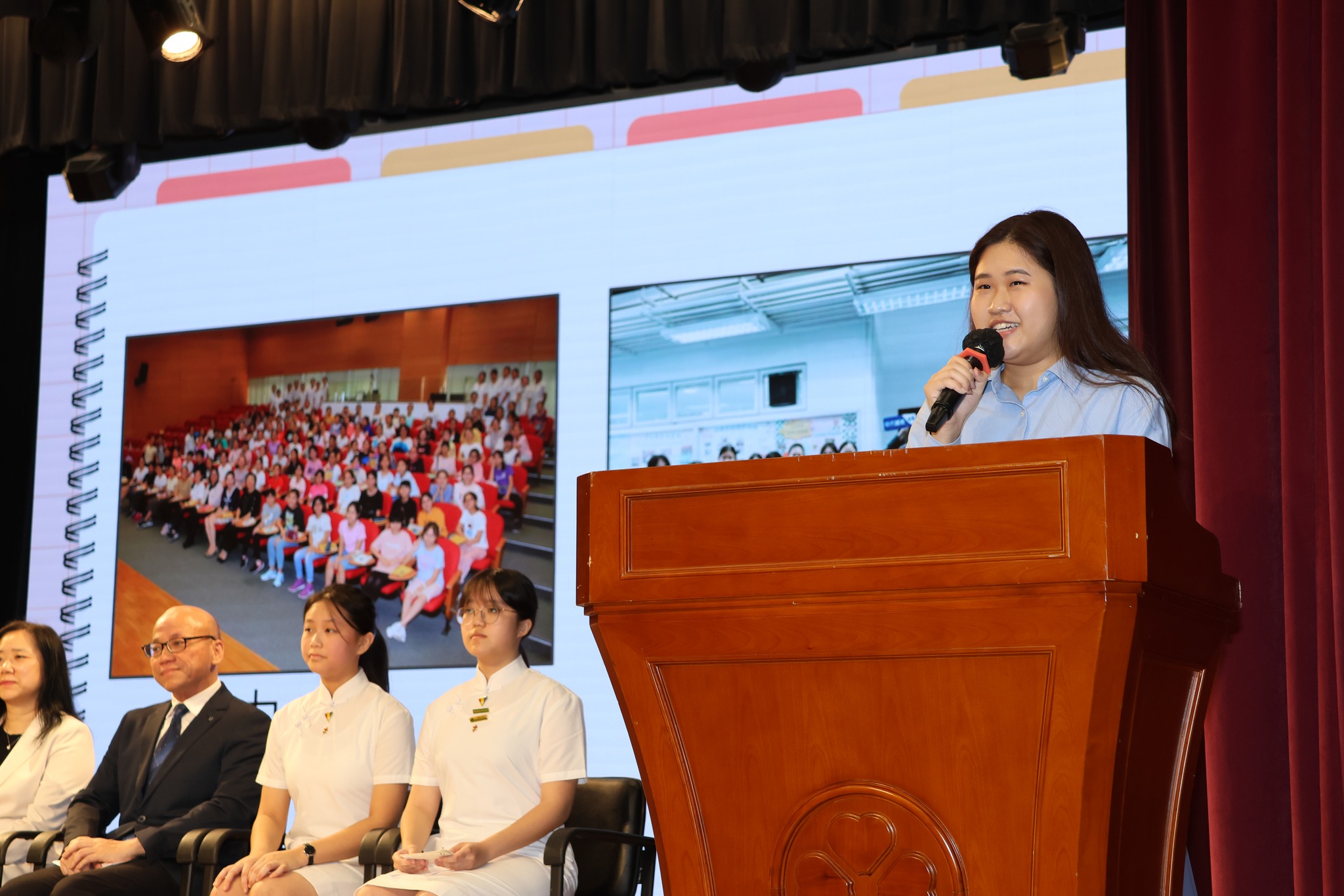 The Pooi To family begins this new academic year with hearts full of gratitude, lifting our prayers to thank God for His grace. Together, we raised our voices and sang this year’s theme hymn, “Abide in God.” May we, the branches of God, remember the lessons from Him and bear fruit through faith and togetherness. Principal Cheung also announced this year’s school theme: “Driven by Innovation, Guided by Values.” She encouraged our girls to embrace challenges with creativity, perseverance and resilience, while upholding positive values. In the face of problems, may we all remember our school motto: love, integrity, purity and perseverance, and navigate our journey of life with purpose. Additionally, our graduate Skye Wu, who has just been admitted to the University of Hong Kong’s Bachelor of Arts and Sciences in Global Health and Development, returned to share her learning journey and expressed her earnest thankfulness to Pooi To. She also encouraged Pooi To sisters to rely on God when facing obstacles ahead. |