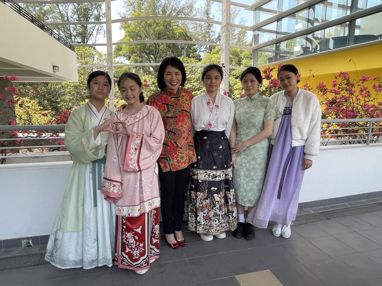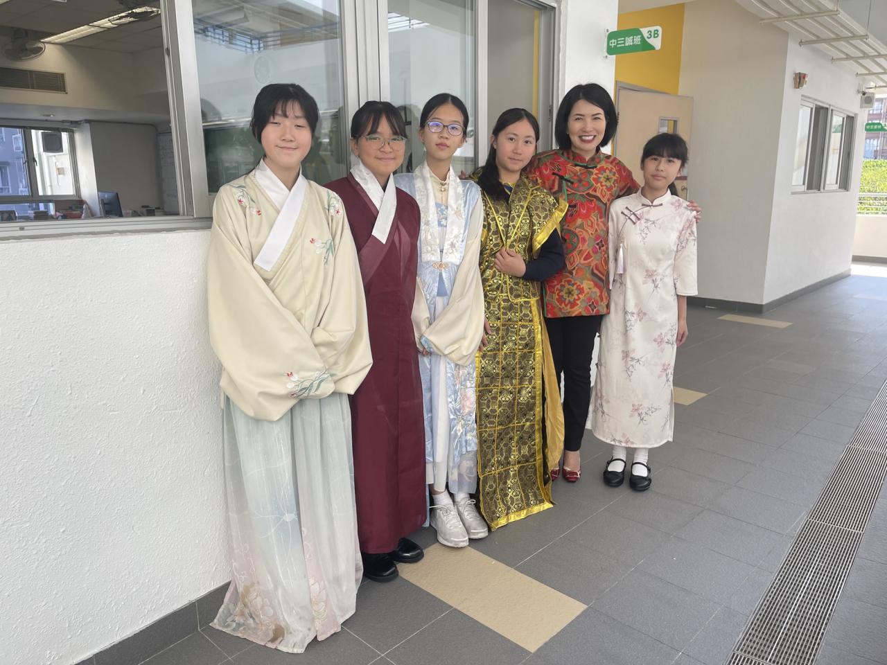 We would like to express our heartfelt gratitude to all the teachers and students for your enthusiastic participation in the First Chinese Costume Day, especially the S1 and S5 students. Through this event, we hope to provide students with the opportunity to personally experience styling traditional Chinese attire and to appreciate the cultural heritage embedded in the details of these costumes. This not only enhances the festive atmosphere of "celebrating the spring with abundant blessings" but also adds a vibrant touch of Chinese culture to our campus.