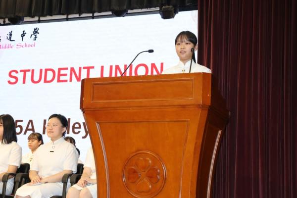 The annual Student Leaders' Inauguration Ceremony was held on this day. During the event, leaders from different teams showcased their leadership skills and highlighted their respective teams' missions, while student representatives from various extra-curricular activities groups stood up and vowed to serve their fellow schoolmates. In her speech, our Principal, Ms Cheung, emphasised the importance of being a servant leader - serving others in leadership roles.