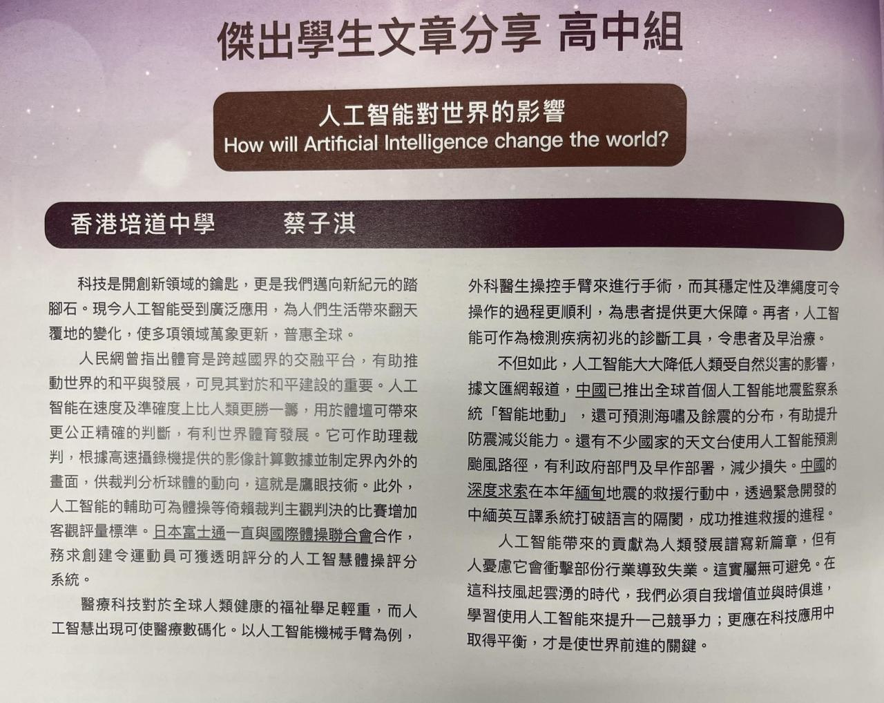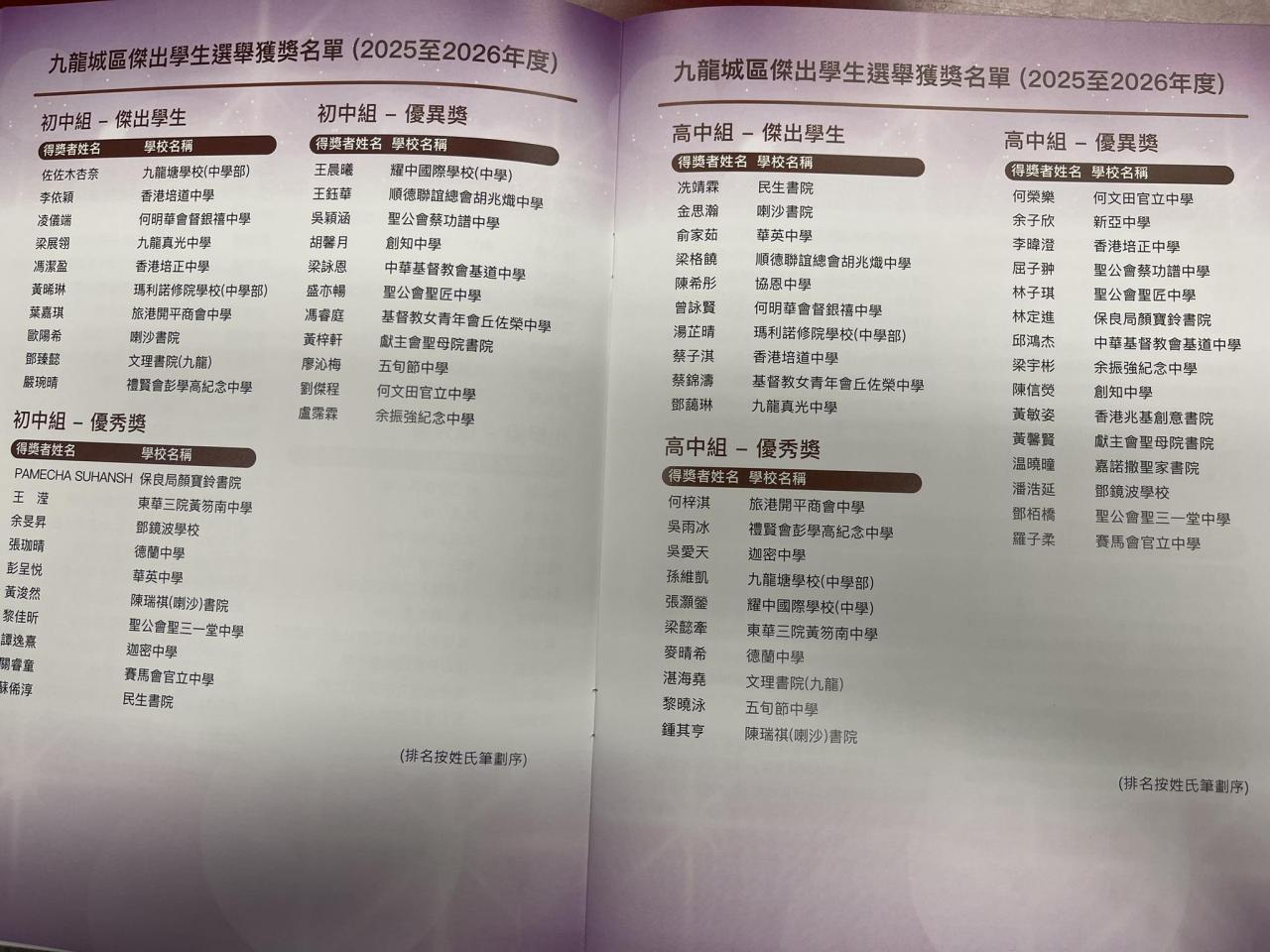 We are pleased to announce that in the 2025-2026 Kowloon City District Outstanding Student Election, Tania Li (S3) and Angel Choi (S5) have won the Outstanding Student Award in both junior and senior sections, respectively. Congratulations!